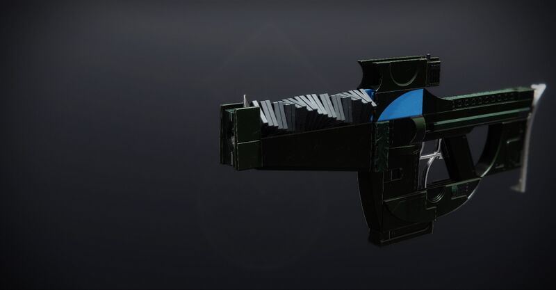 This image is a screenshot of a weapon from the Destiny series of first-person shooter video games developed by Bungie Studios and published by Bungie or Activision. It falls under the screenshot category for a copyrighted computer game or video game, and the copyright for it is most likely held by the company that developed the game. It is believed that the use of a limited number of web-resolution screenshots: