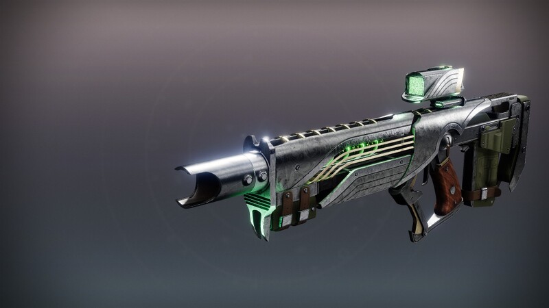 This image is a screenshot of a weapon from the Destiny series of first-person shooter video games developed by Bungie Studios and published by Bungie or Activision. It falls under the screenshot category for a copyrighted computer game or video game, and the copyright for it is most likely held by the company that developed the game. It is believed that the use of a limited number of web-resolution screenshots: