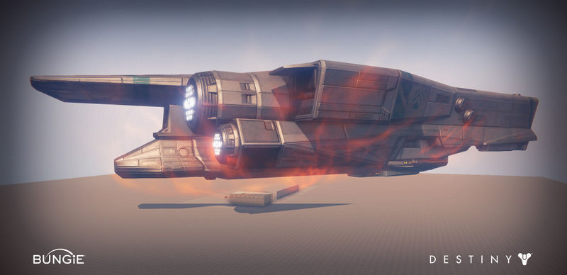 This image is a screenshot of a vehicle from the Destiny series of first-person shooter video games developed by Bungie Studios and published by Bungie or Activision. It falls under the screenshot category for a copyrighted computer game or video game, and the copyright for it is most likely held by the company that developed the game. It is believed that the use of a limited number of web-resolution screenshots:
