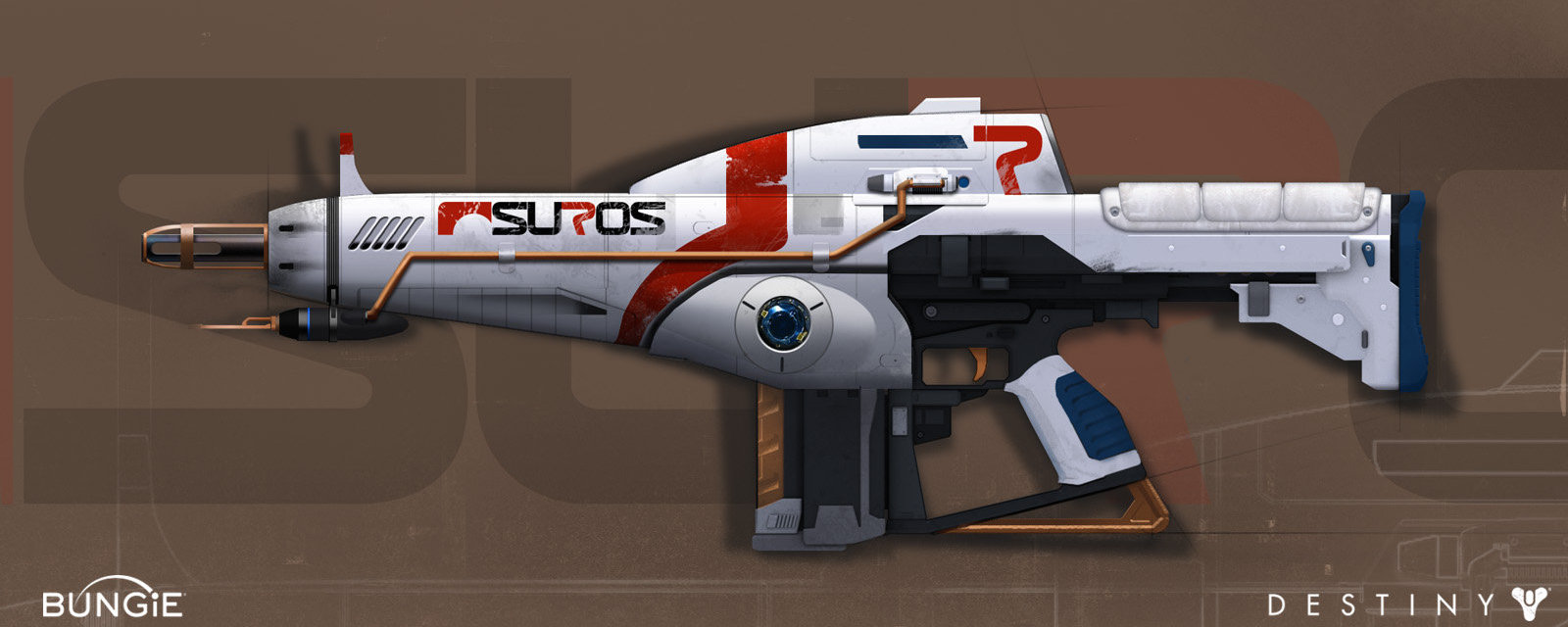 This image is a screenshot of a weapon from the Destiny series of first-person shooter video games developed by Bungie Studios and published by Bungie or Activision. It falls under the screenshot category for a copyrighted computer game or video game, and the copyright for it is most likely held by the company that developed the game. It is believed that the use of a limited number of web-resolution screenshots: