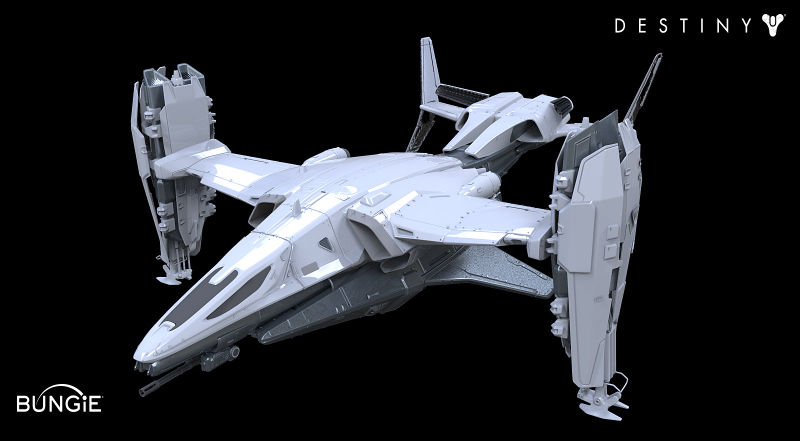 This image is a screenshot of a vehicle from the Destiny series of first-person shooter video games developed by Bungie Studios and published by Bungie or Activision. It falls under the screenshot category for a copyrighted computer game or video game, and the copyright for it is most likely held by the company that developed the game. It is believed that the use of a limited number of web-resolution screenshots: