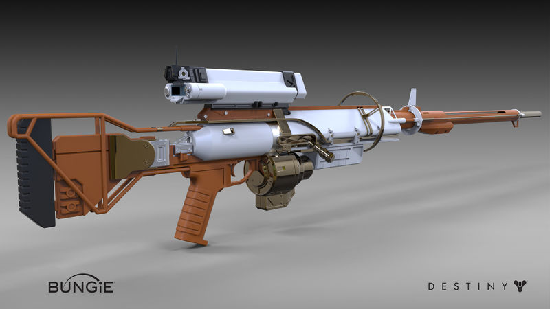This image is a screenshot of a weapon from the Destiny series of first-person shooter video games developed by Bungie Studios and published by Bungie or Activision. It falls under the screenshot category for a copyrighted computer game or video game, and the copyright for it is most likely held by the company that developed the game. It is believed that the use of a limited number of web-resolution screenshots: