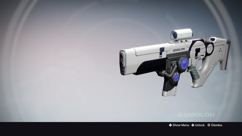This image is a screenshot of a weapon from the Destiny series of first-person shooter video games developed by Bungie Studios and published by Bungie or Activision. It falls under the screenshot category for a copyrighted computer game or video game, and the copyright for it is most likely held by the company that developed the game. It is believed that the use of a limited number of web-resolution screenshots: