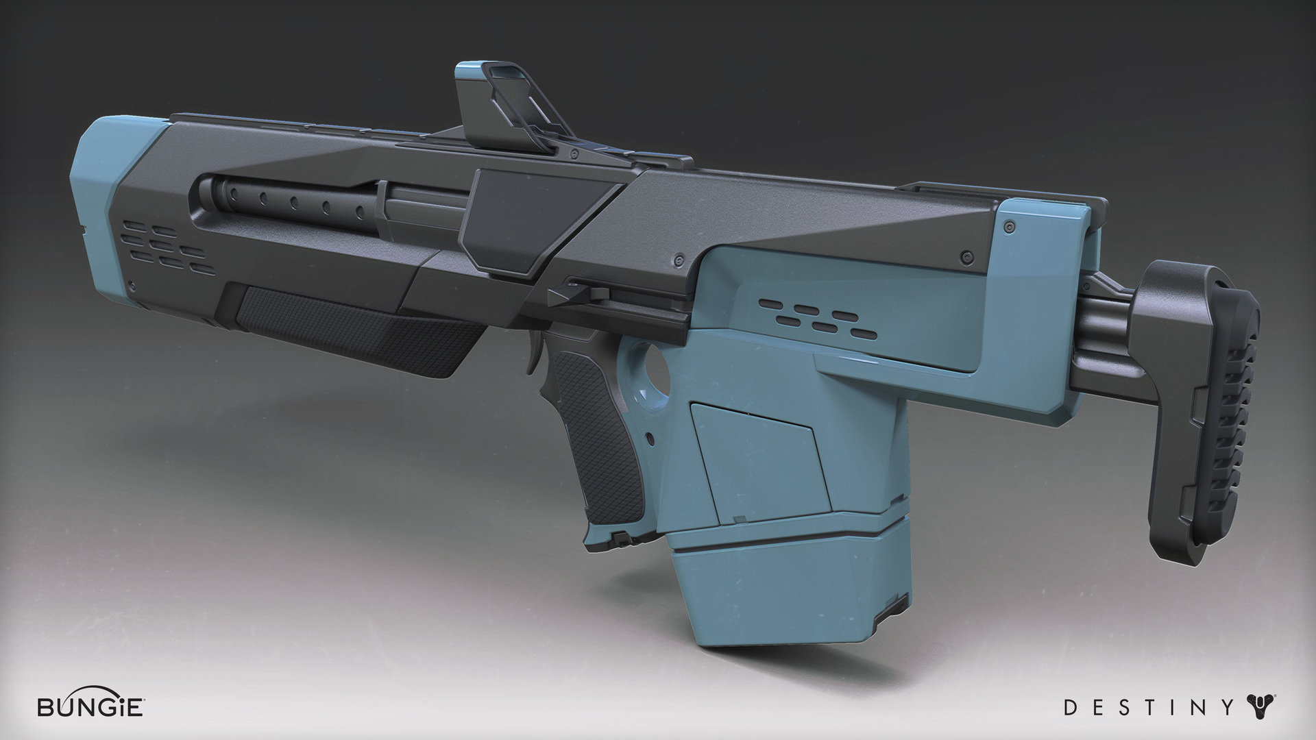 This image is a screenshot of a weapon from the Destiny series of first-person shooter video games developed by Bungie Studios and published by Bungie or Activision. It falls under the screenshot category for a copyrighted computer game or video game, and the copyright for it is most likely held by the company that developed the game. It is believed that the use of a limited number of web-resolution screenshots:
