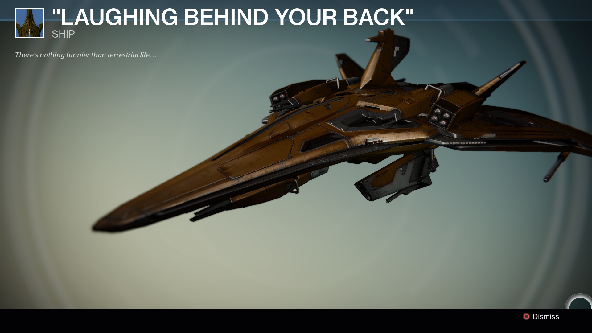 This image is a screenshot of a vehicle from the Destiny series of first-person shooter video games developed by Bungie Studios and published by Bungie or Activision. It falls under the screenshot category for a copyrighted computer game or video game, and the copyright for it is most likely held by the company that developed the game. It is believed that the use of a limited number of web-resolution screenshots: