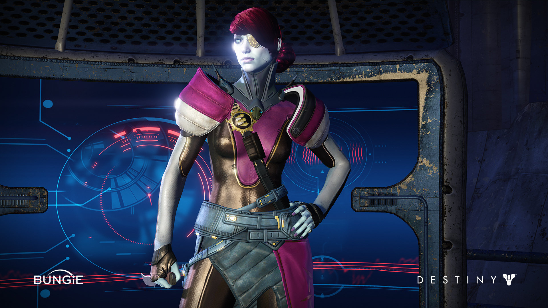 This image is a screenshot of a character or AI unit from the Destiny series of first-person shooter video games developed by Bungie Studios and published by Bungie or Activision. It falls under the screenshot category for a copyrighted computer game or video game, and the copyright for it is most likely held by the company that developed the game. It is believed that the use of a limited number of web-resolution screenshots: