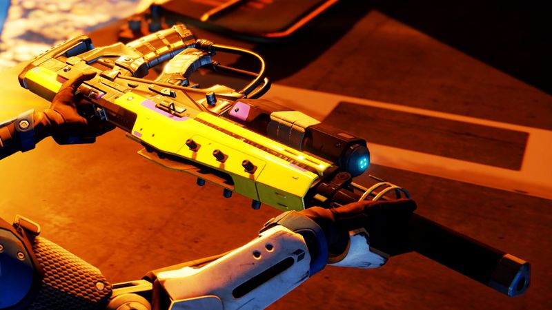 This image is a screenshot of a weapon from the Destiny series of first-person shooter video games developed by Bungie Studios and published by Bungie or Activision. It falls under the screenshot category for a copyrighted computer game or video game, and the copyright for it is most likely held by the company that developed the game. It is believed that the use of a limited number of web-resolution screenshots: