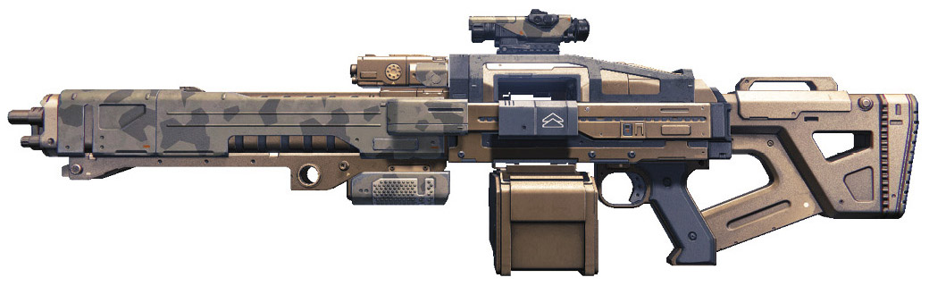 This image is a screenshot of a weapon from the Destiny series of first-person shooter video games developed by Bungie Studios and published by Bungie or Activision. It falls under the screenshot category for a copyrighted computer game or video game, and the copyright for it is most likely held by the company that developed the game. It is believed that the use of a limited number of web-resolution screenshots: