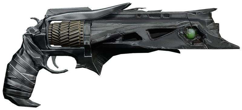 This image is a screenshot of a weapon from the Destiny series of first-person shooter video games developed by Bungie Studios and published by Bungie or Activision. It falls under the screenshot category for a copyrighted computer game or video game, and the copyright for it is most likely held by the company that developed the game. It is believed that the use of a limited number of web-resolution screenshots: