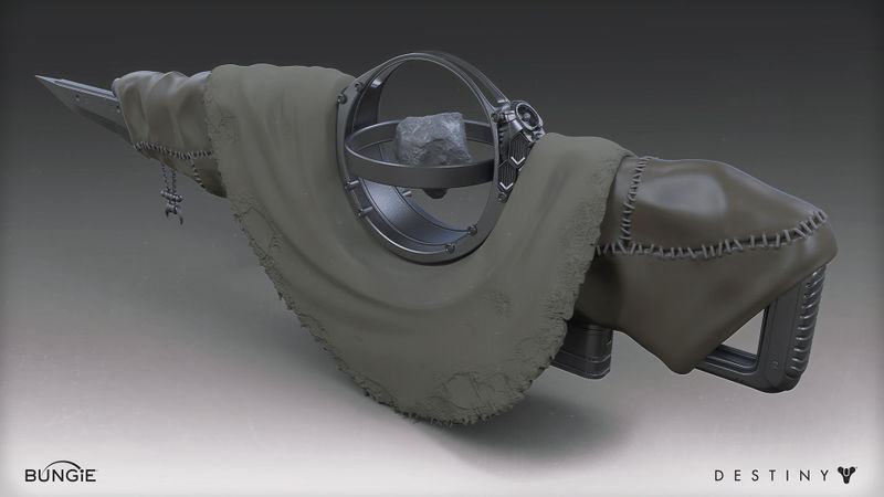 This image is a screenshot of a weapon from the Destiny series of first-person shooter video games developed by Bungie Studios and published by Bungie or Activision. It falls under the screenshot category for a copyrighted computer game or video game, and the copyright for it is most likely held by the company that developed the game. It is believed that the use of a limited number of web-resolution screenshots: