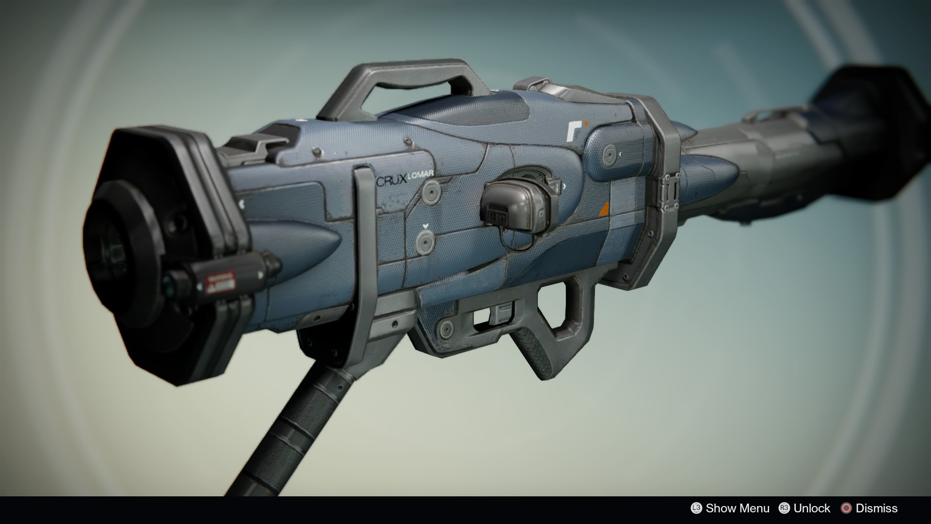 This image is a screenshot of a weapon from the Destiny series of first-person shooter video games developed by Bungie Studios and published by Bungie or Activision. It falls under the screenshot category for a copyrighted computer game or video game, and the copyright for it is most likely held by the company that developed the game. It is believed that the use of a limited number of web-resolution screenshots: