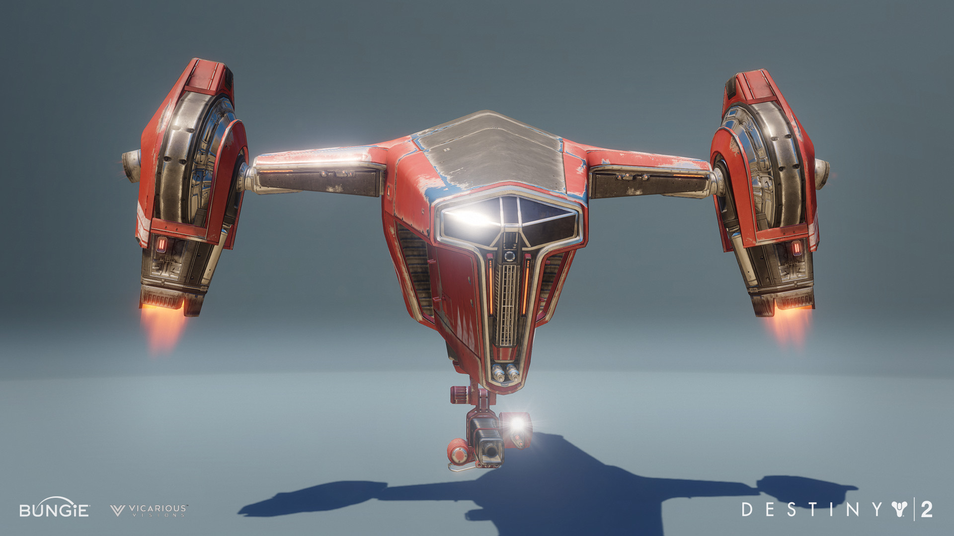This image is a screenshot of a vehicle from the Destiny series of first-person shooter video games developed by Bungie Studios and published by Bungie or Activision. It falls under the screenshot category for a copyrighted computer game or video game, and the copyright for it is most likely held by the company that developed the game. It is believed that the use of a limited number of web-resolution screenshots: