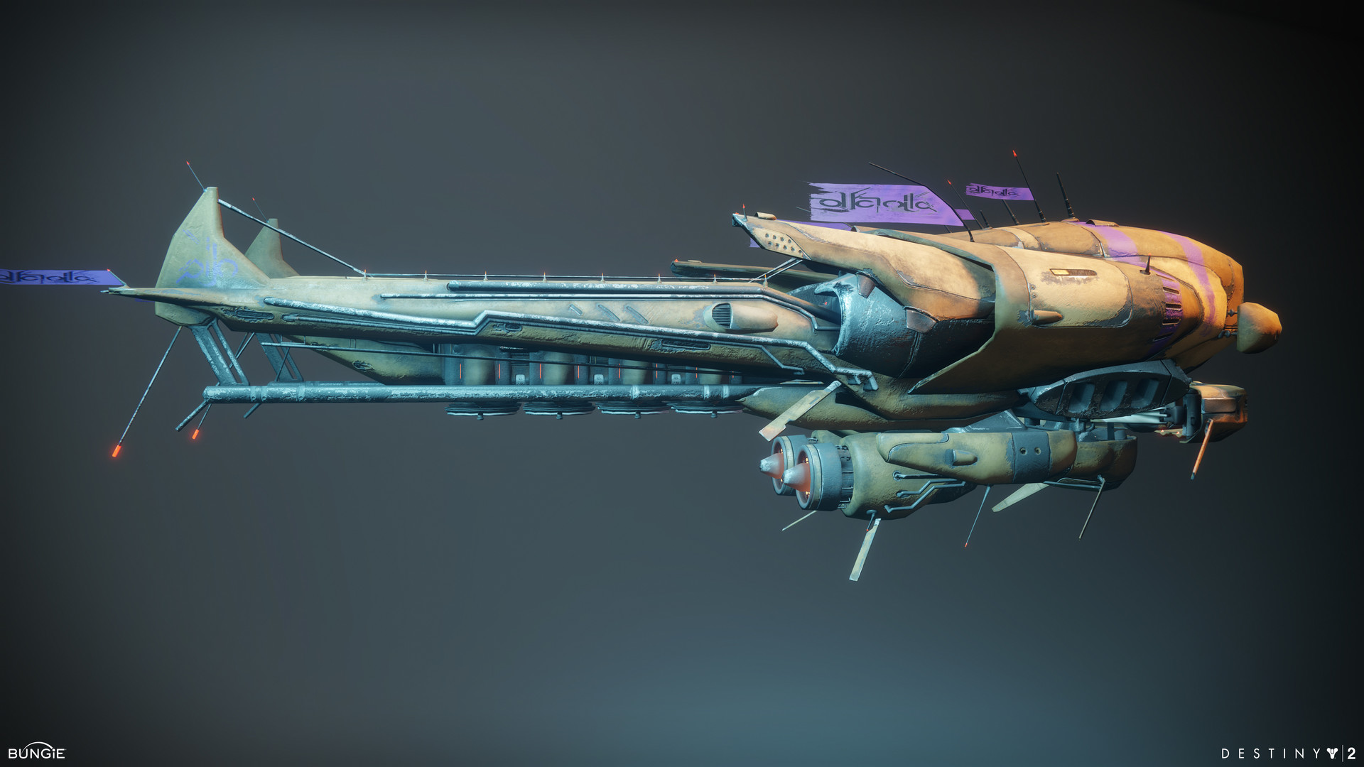 This image is a screenshot of a vehicle from the Destiny series of first-person shooter video games developed by Bungie Studios and published by Bungie or Activision. It falls under the screenshot category for a copyrighted computer game or video game, and the copyright for it is most likely held by the company that developed the game. It is believed that the use of a limited number of web-resolution screenshots: