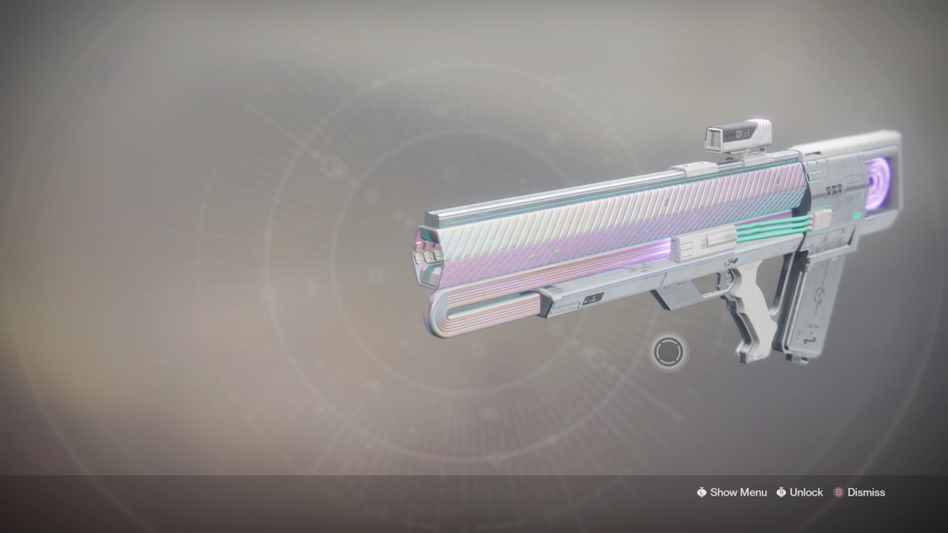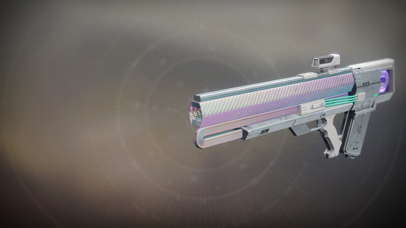 This image is a screenshot of a weapon from the Destiny series of first-person shooter video games developed by Bungie Studios and published by Bungie or Activision. It falls under the screenshot category for a copyrighted computer game or video game, and the copyright for it is most likely held by the company that developed the game. It is believed that the use of a limited number of web-resolution screenshots: