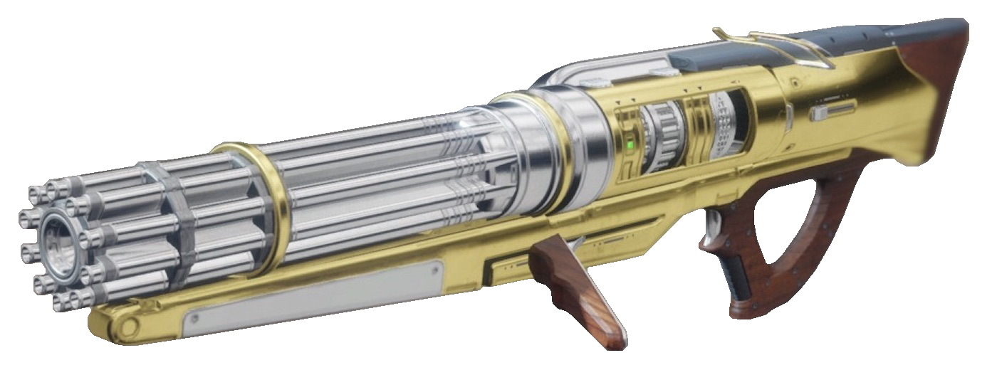 This image is a screenshot of a weapon from the Destiny series of first-person shooter video games developed by Bungie Studios and published by Bungie or Activision. It falls under the screenshot category for a copyrighted computer game or video game, and the copyright for it is most likely held by the company that developed the game. It is believed that the use of a limited number of web-resolution screenshots:
