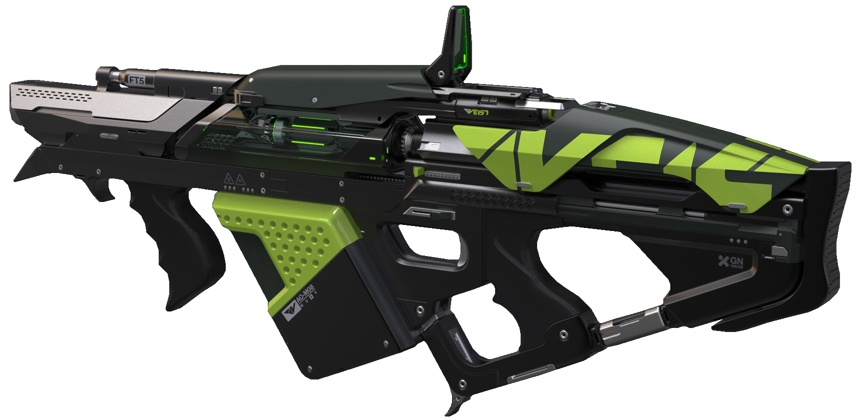 This image is a screenshot of a weapon from the Destiny series of first-person shooter video games developed by Bungie Studios and published by Bungie or Activision. It falls under the screenshot category for a copyrighted computer game or video game, and the copyright for it is most likely held by the company that developed the game. It is believed that the use of a limited number of web-resolution screenshots: