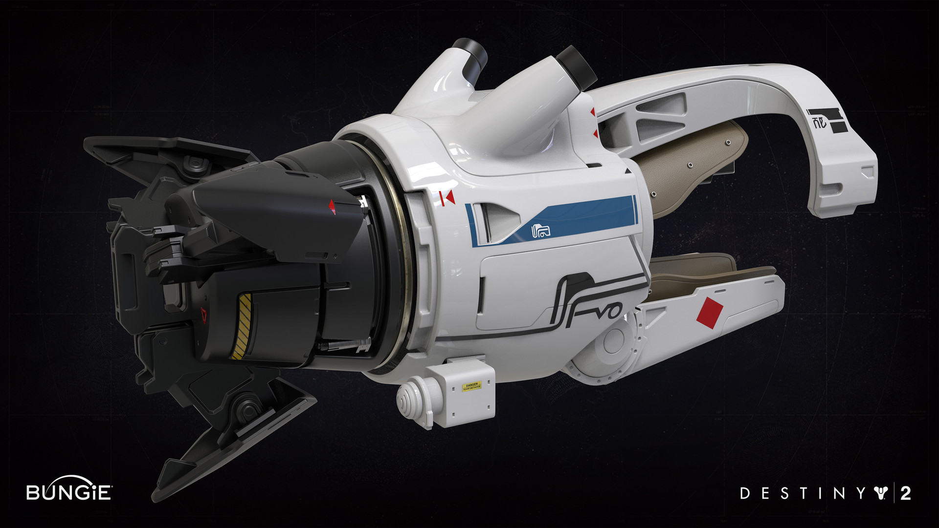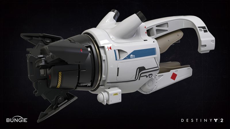This image is a screenshot of a weapon from the Destiny series of first-person shooter video games developed by Bungie Studios and published by Bungie or Activision. It falls under the screenshot category for a copyrighted computer game or video game, and the copyright for it is most likely held by the company that developed the game. It is believed that the use of a limited number of web-resolution screenshots: