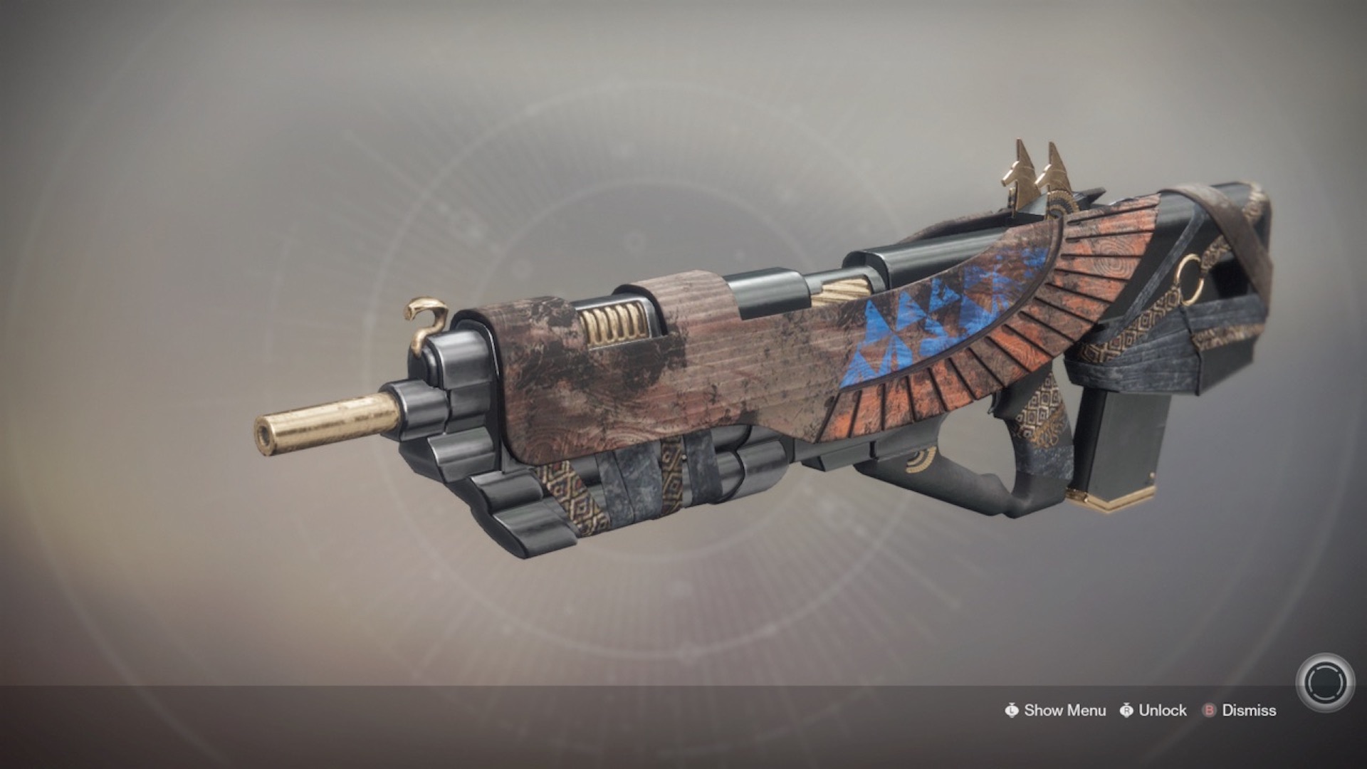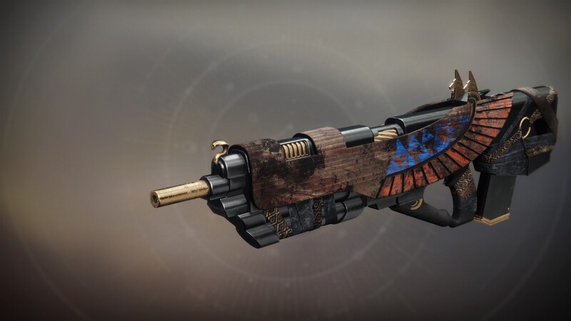 This image is a screenshot of a weapon from the Destiny series of first-person shooter video games developed by Bungie Studios and published by Bungie or Activision. It falls under the screenshot category for a copyrighted computer game or video game, and the copyright for it is most likely held by the company that developed the game. It is believed that the use of a limited number of web-resolution screenshots: