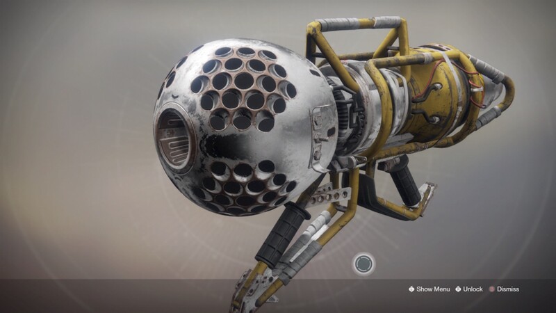 This image is a screenshot of a weapon from the Destiny series of first-person shooter video games developed by Bungie Studios and published by Bungie or Activision. It falls under the screenshot category for a copyrighted computer game or video game, and the copyright for it is most likely held by the company that developed the game. It is believed that the use of a limited number of web-resolution screenshots: