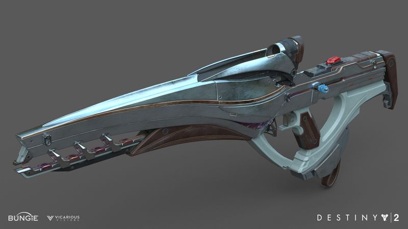 This image is a screenshot of a weapon from the Destiny series of first-person shooter video games developed by Bungie Studios and published by Bungie or Activision. It falls under the screenshot category for a copyrighted computer game or video game, and the copyright for it is most likely held by the company that developed the game. It is believed that the use of a limited number of web-resolution screenshots: