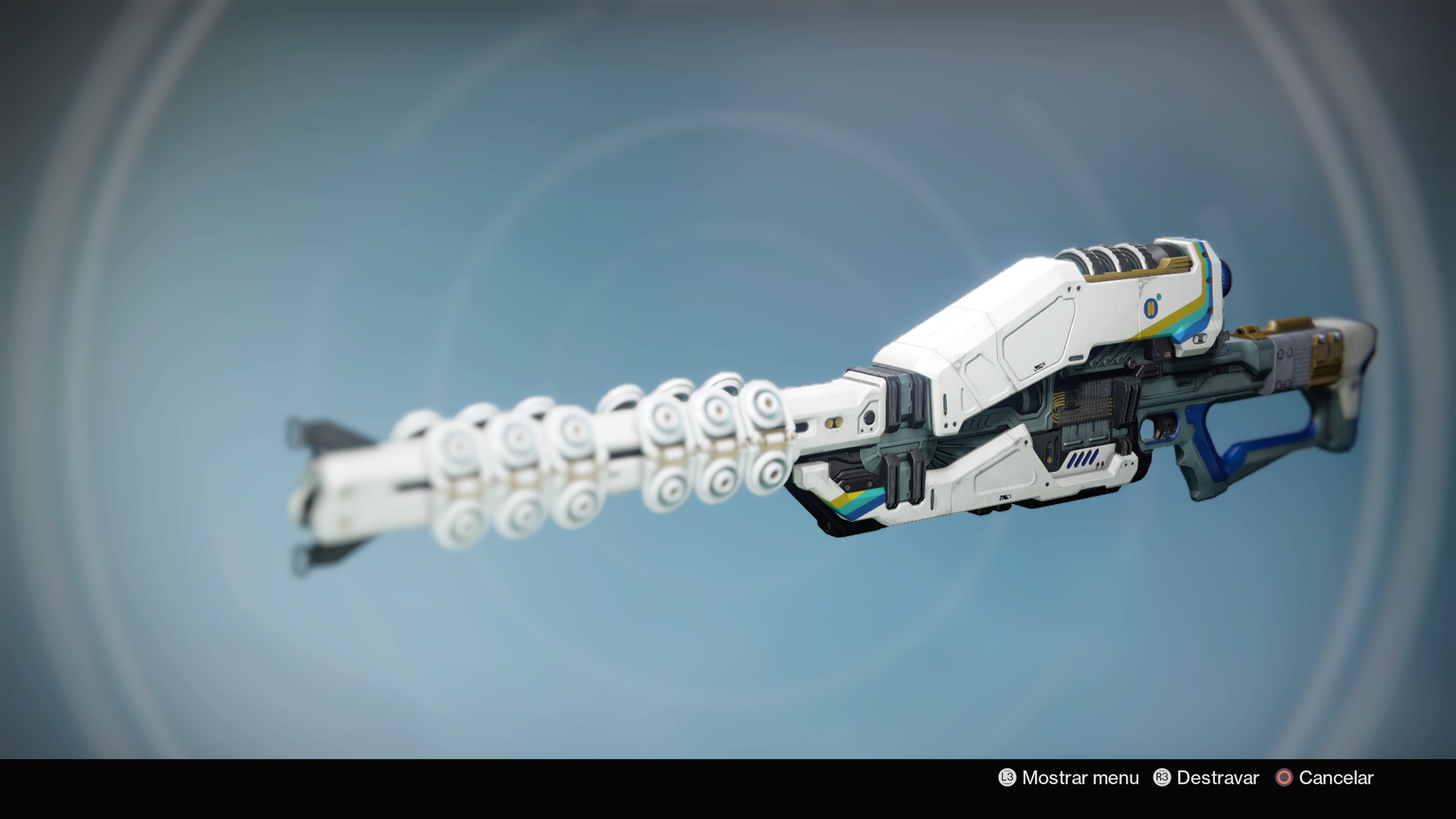 This image is a screenshot of a weapon from the Destiny series of first-person shooter video games developed by Bungie Studios and published by Bungie or Activision. It falls under the screenshot category for a copyrighted computer game or video game, and the copyright for it is most likely held by the company that developed the game. It is believed that the use of a limited number of web-resolution screenshots: