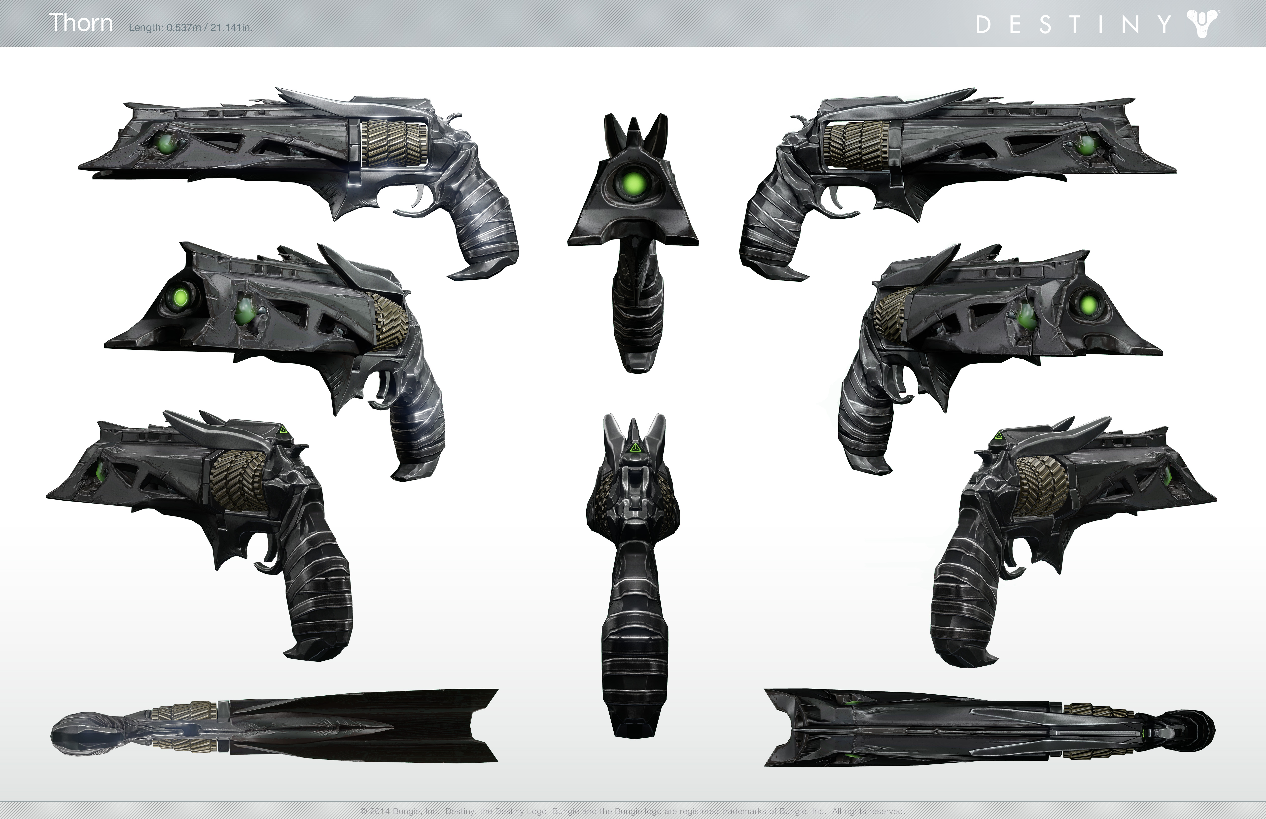 This image is a screenshot of a weapon from the Destiny series of first-person shooter video games developed by Bungie Studios and published by Bungie or Activision. It falls under the screenshot category for a copyrighted computer game or video game, and the copyright for it is most likely held by the company that developed the game. It is believed that the use of a limited number of web-resolution screenshots: