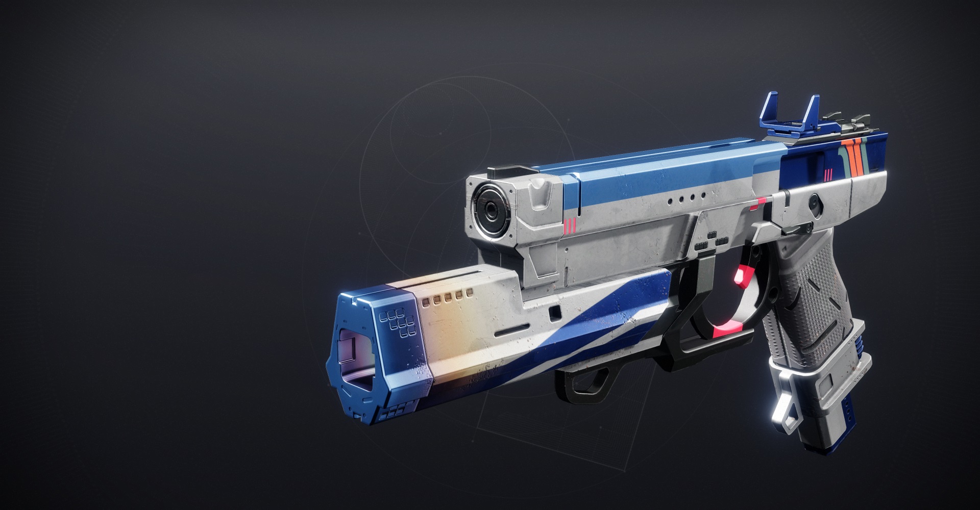 This image is a screenshot of a weapon from the Destiny series of first-person shooter video games developed by Bungie Studios and published by Bungie or Activision. It falls under the screenshot category for a copyrighted computer game or video game, and the copyright for it is most likely held by the company that developed the game. It is believed that the use of a limited number of web-resolution screenshots: