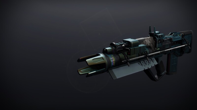This image is a screenshot of a weapon from the Destiny series of first-person shooter video games developed by Bungie Studios and published by Bungie or Activision. It falls under the screenshot category for a copyrighted computer game or video game, and the copyright for it is most likely held by the company that developed the game. It is believed that the use of a limited number of web-resolution screenshots: