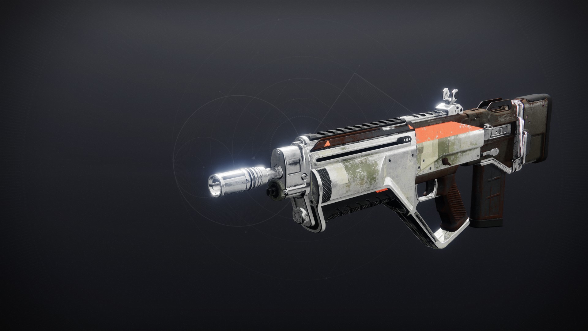This image is a screenshot of a weapon from the Destiny series of first-person shooter video games developed by Bungie Studios and published by Bungie or Activision. It falls under the screenshot category for a copyrighted computer game or video game, and the copyright for it is most likely held by the company that developed the game. It is believed that the use of a limited number of web-resolution screenshots: