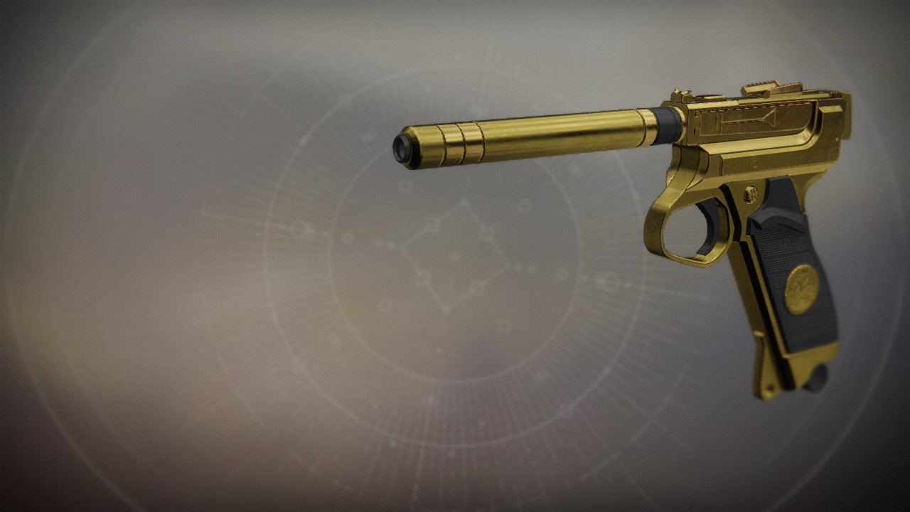 This image is a screenshot of a weapon from the Destiny series of first-person shooter video games developed by Bungie Studios and published by Bungie or Activision. It falls under the screenshot category for a copyrighted computer game or video game, and the copyright for it is most likely held by the company that developed the game. It is believed that the use of a limited number of web-resolution screenshots: