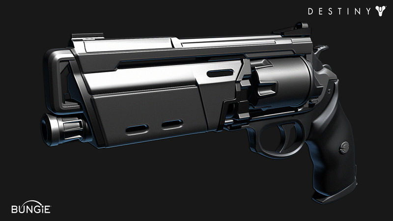 This image is a screenshot of a weapon from the Destiny series of first-person shooter video games developed by Bungie Studios and published by Bungie or Activision. It falls under the screenshot category for a copyrighted computer game or video game, and the copyright for it is most likely held by the company that developed the game. It is believed that the use of a limited number of web-resolution screenshots: