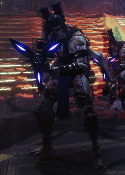 This image is a screenshot of a character or AI unit from the Destiny series of first-person shooter video games developed by Bungie Studios and published by Bungie or Activision. It falls under the screenshot category for a copyrighted computer game or video game, and the copyright for it is most likely held by the company that developed the game. It is believed that the use of a limited number of web-resolution screenshots: