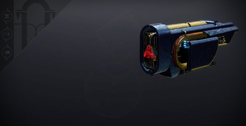 This image is a screenshot of a weapon from the Destiny series of first-person shooter video games developed by Bungie Studios and published by Bungie or Activision. It falls under the screenshot category for a copyrighted computer game or video game, and the copyright for it is most likely held by the company that developed the game. It is believed that the use of a limited number of web-resolution screenshots: