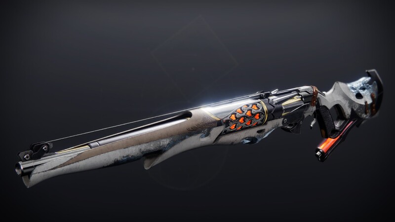This image is a screenshot of a weapon from the Destiny series of first-person shooter video games developed by Bungie Studios and published by Bungie or Activision. It falls under the screenshot category for a copyrighted computer game or video game, and the copyright for it is most likely held by the company that developed the game. It is believed that the use of a limited number of web-resolution screenshots: