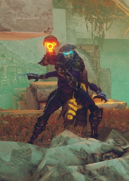 This image is a screenshot of a character or AI unit from the Destiny series of first-person shooter video games developed by Bungie Studios and published by Bungie or Activision. It falls under the screenshot category for a copyrighted computer game or video game, and the copyright for it is most likely held by the company that developed the game. It is believed that the use of a limited number of web-resolution screenshots: