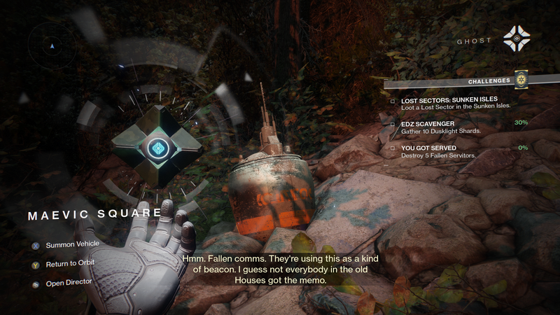 Ghost: "Hmm, Fallen comms. They're using this as a kind of beacon. I guess not everybody in the old Houses got the memo."