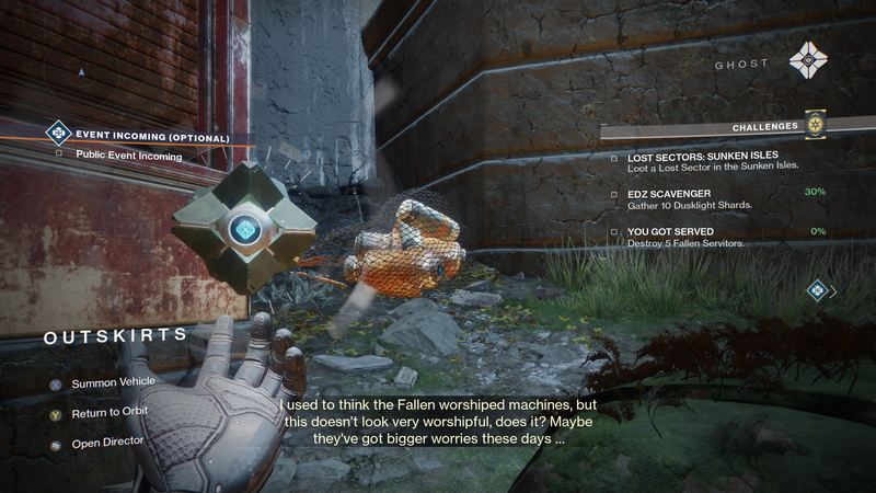 Ghost: "I used to think the Fallen worshipped machines, but this doesn't look very worshipful, does it? Maybe they've got bigger worries these days..."