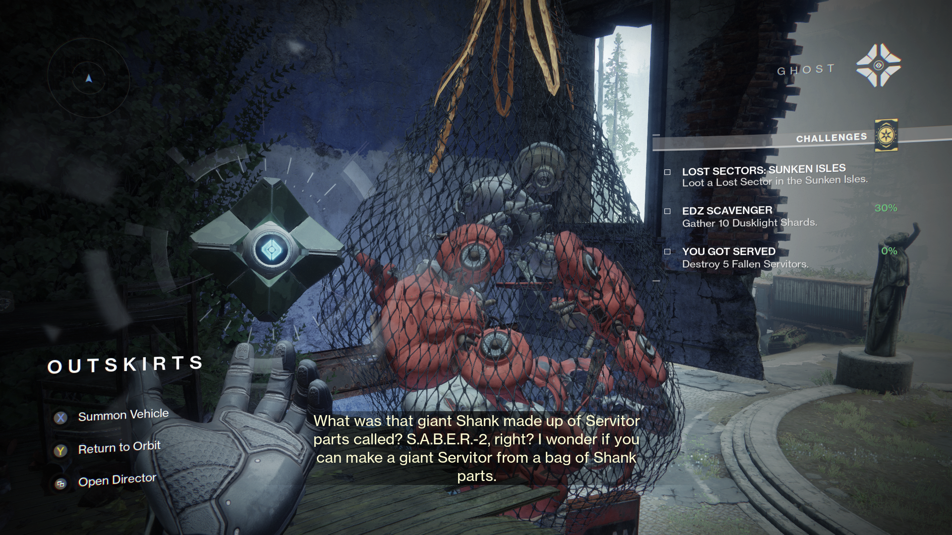 Ghost: "What was that giant Shank made up of Servitor parts called? S.A.B.E.R.-2, right? I wonder if you can make a giant Servitor from a bag of Shank parts."