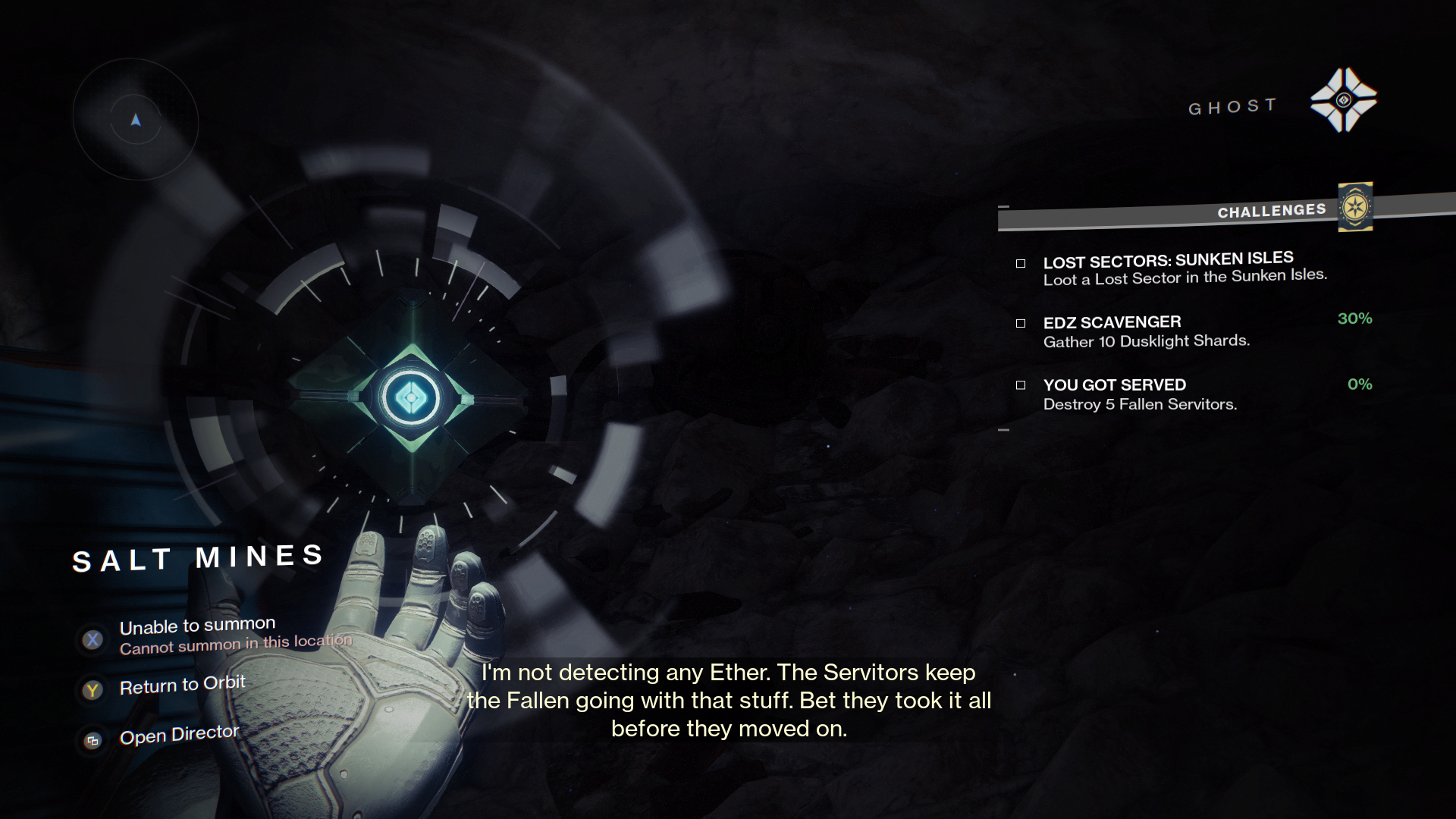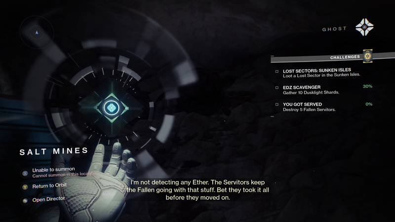 Ghost: "I'm not detecting any Ether. The Servitors keep the Fallen going with that stuff. Bet they took it all before they moved on."