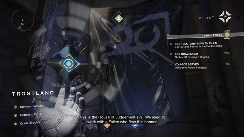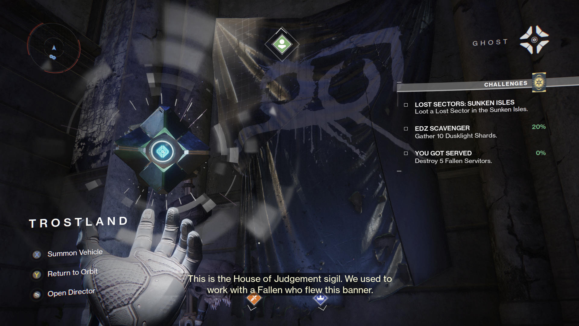 Ghost: "This is the House of Judgment. We used to work with a [[Variks|Fallen] who flew this banner."