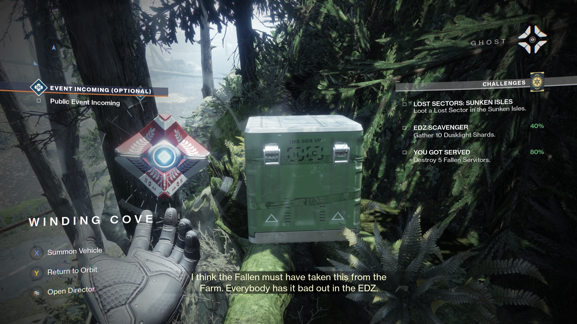 Ghost: "I think the Fallen must have taken this from the Farm. Everybody has it bad out in the EDZ."