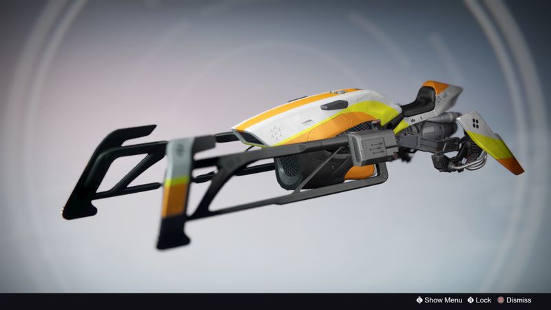 This image is a screenshot of a vehicle from the Destiny series of first-person shooter video games developed by Bungie Studios and published by Bungie or Activision. It falls under the screenshot category for a copyrighted computer game or video game, and the copyright for it is most likely held by the company that developed the game. It is believed that the use of a limited number of web-resolution screenshots: