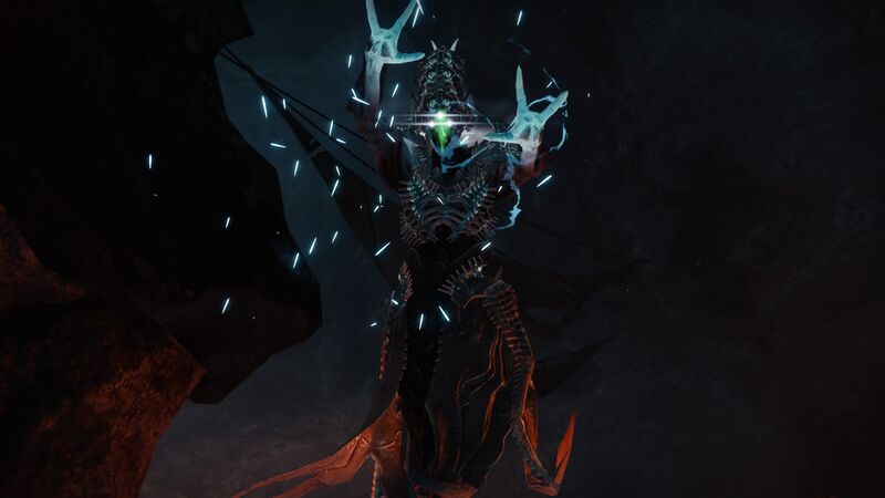 This image is a screenshot of a character or AI unit from the Destiny series of first-person shooter video games developed by Bungie Studios and published by Bungie or Activision. It falls under the screenshot category for a copyrighted computer game or video game, and the copyright for it is most likely held by the company that developed the game. It is believed that the use of a limited number of web-resolution screenshots: