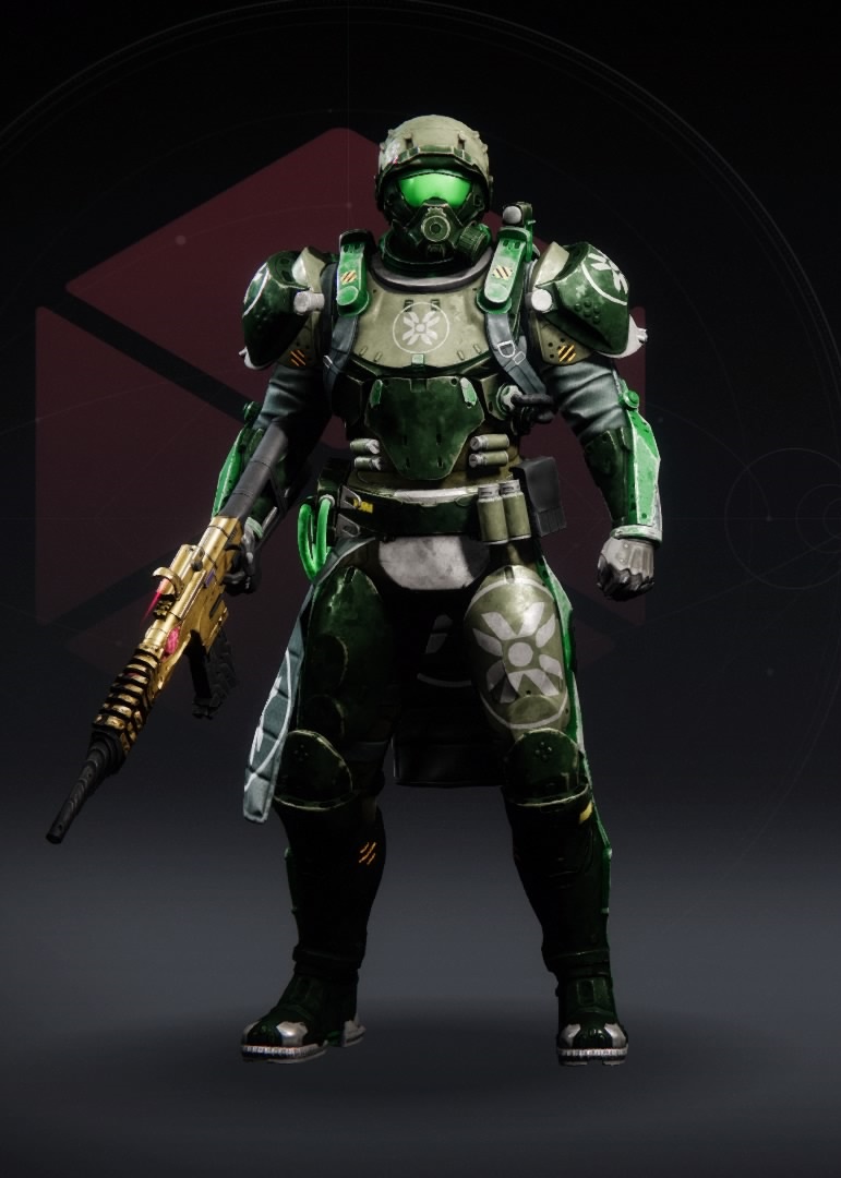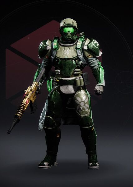 This image is a screenshot of armor from the Destiny series of first-person shooter video games developed by Bungie Studios and published by Bungie or Activision. It falls under the screenshot category for a copyrighted computer game or video game, and the copyright for it is most likely held by the company that developed the game. It is believed that the use of a limited number of web-resolution screenshots: