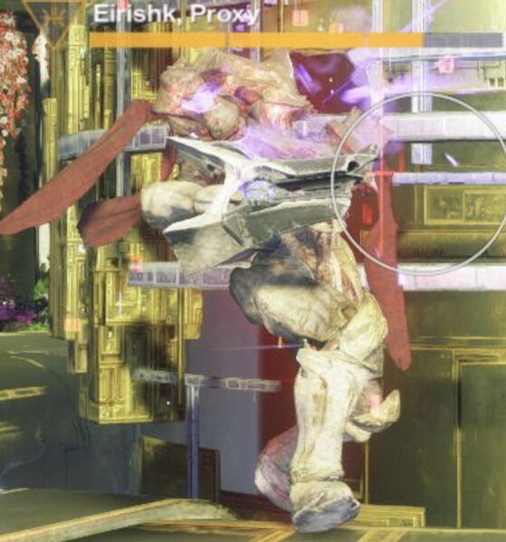 This image is a screenshot of a character or AI unit from the Destiny series of first-person shooter video games developed by Bungie Studios and published by Bungie or Activision. It falls under the screenshot category for a copyrighted computer game or video game, and the copyright for it is most likely held by the company that developed the game. It is believed that the use of a limited number of web-resolution screenshots: