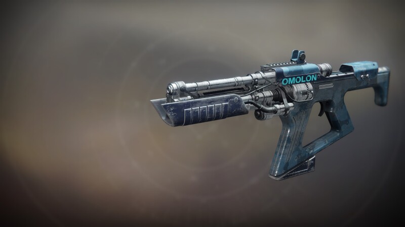 This image is a screenshot of a weapon from the Destiny series of first-person shooter video games developed by Bungie Studios and published by Bungie or Activision. It falls under the screenshot category for a copyrighted computer game or video game, and the copyright for it is most likely held by the company that developed the game. It is believed that the use of a limited number of web-resolution screenshots:
