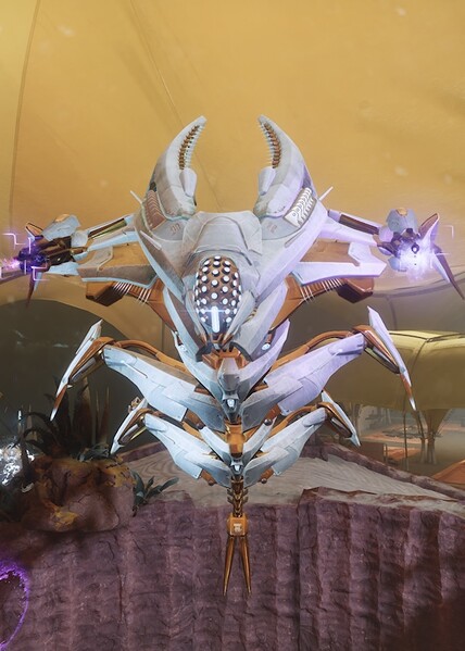 This image is a screenshot of a character or AI unit from the Destiny series of first-person shooter video games developed by Bungie Studios and published by Bungie or Activision. It falls under the screenshot category for a copyrighted computer game or video game, and the copyright for it is most likely held by the company that developed the game. It is believed that the use of a limited number of web-resolution screenshots: