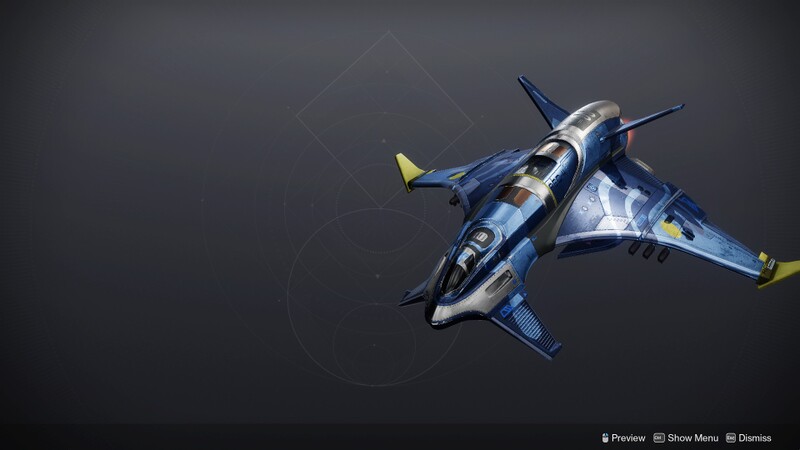 This image is a screenshot of a vehicle from the Destiny series of first-person shooter video games developed by Bungie Studios and published by Bungie or Activision. It falls under the screenshot category for a copyrighted computer game or video game, and the copyright for it is most likely held by the company that developed the game. It is believed that the use of a limited number of web-resolution screenshots:
