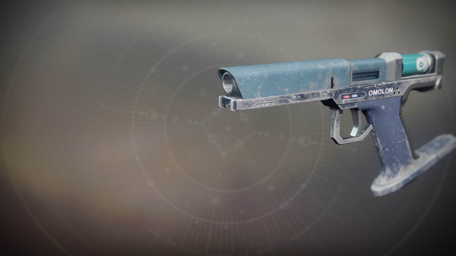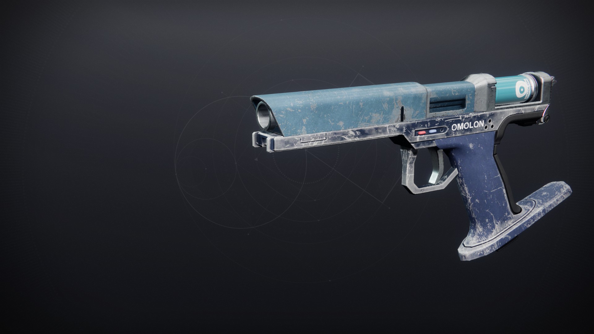 This image is a screenshot of a weapon from the Destiny series of first-person shooter video games developed by Bungie Studios and published by Bungie or Activision. It falls under the screenshot category for a copyrighted computer game or video game, and the copyright for it is most likely held by the company that developed the game. It is believed that the use of a limited number of web-resolution screenshots: