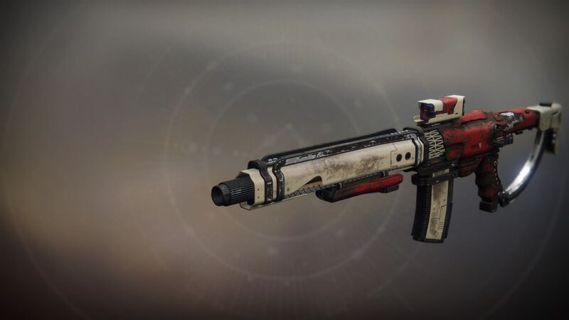This image is a screenshot of a weapon from the Destiny series of first-person shooter video games developed by Bungie Studios and published by Bungie or Activision. It falls under the screenshot category for a copyrighted computer game or video game, and the copyright for it is most likely held by the company that developed the game. It is believed that the use of a limited number of web-resolution screenshots: